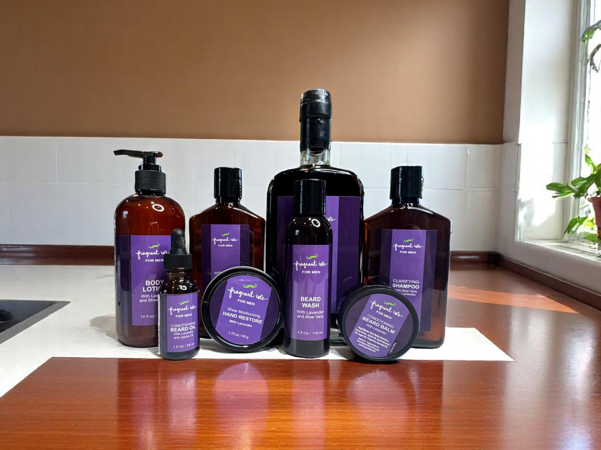 Fragrant Isle's Men's Collection is made up of all natural components including our very own essential oils. It's Woody Amber scent will leave you feeling fresh, clean, and great.